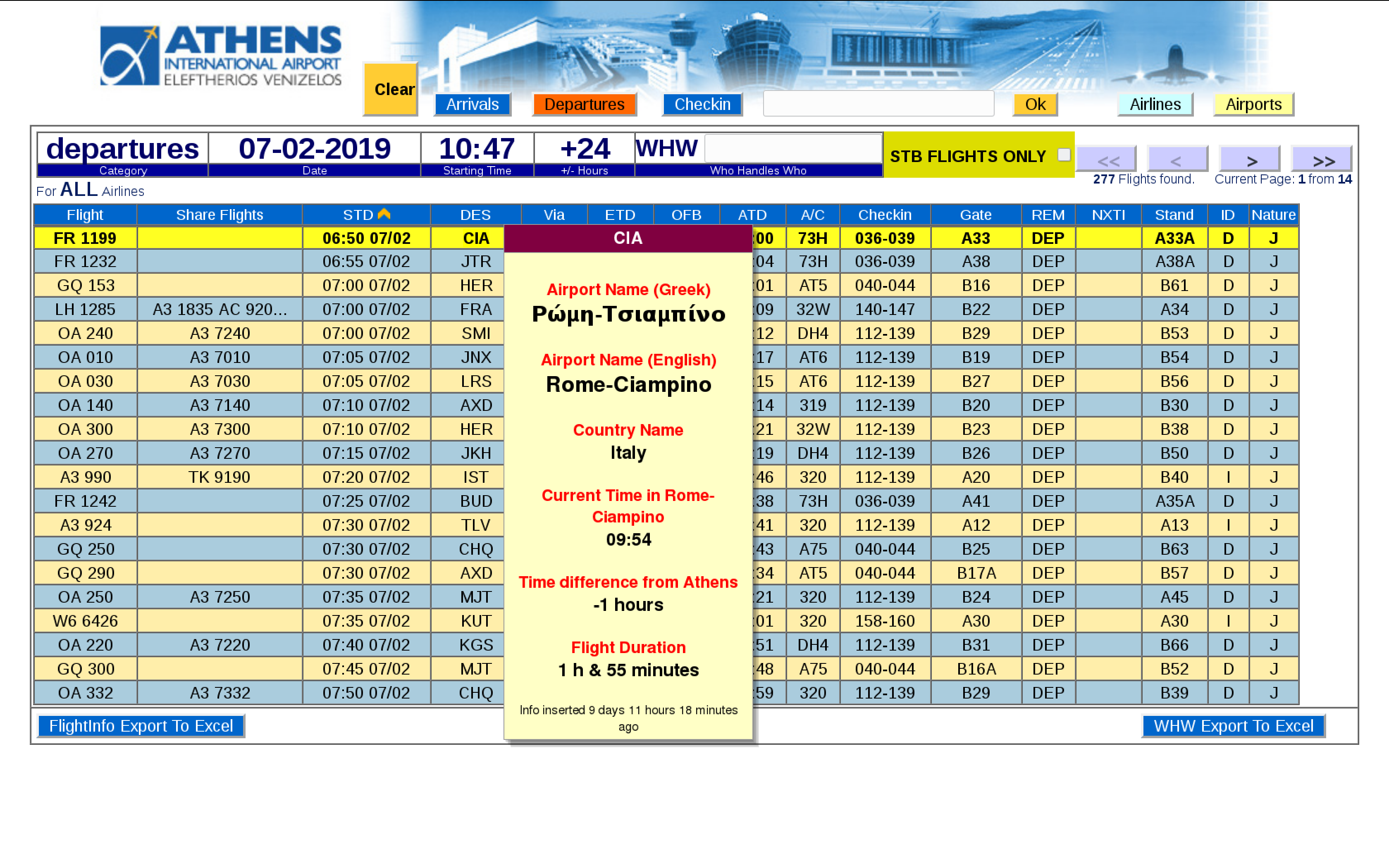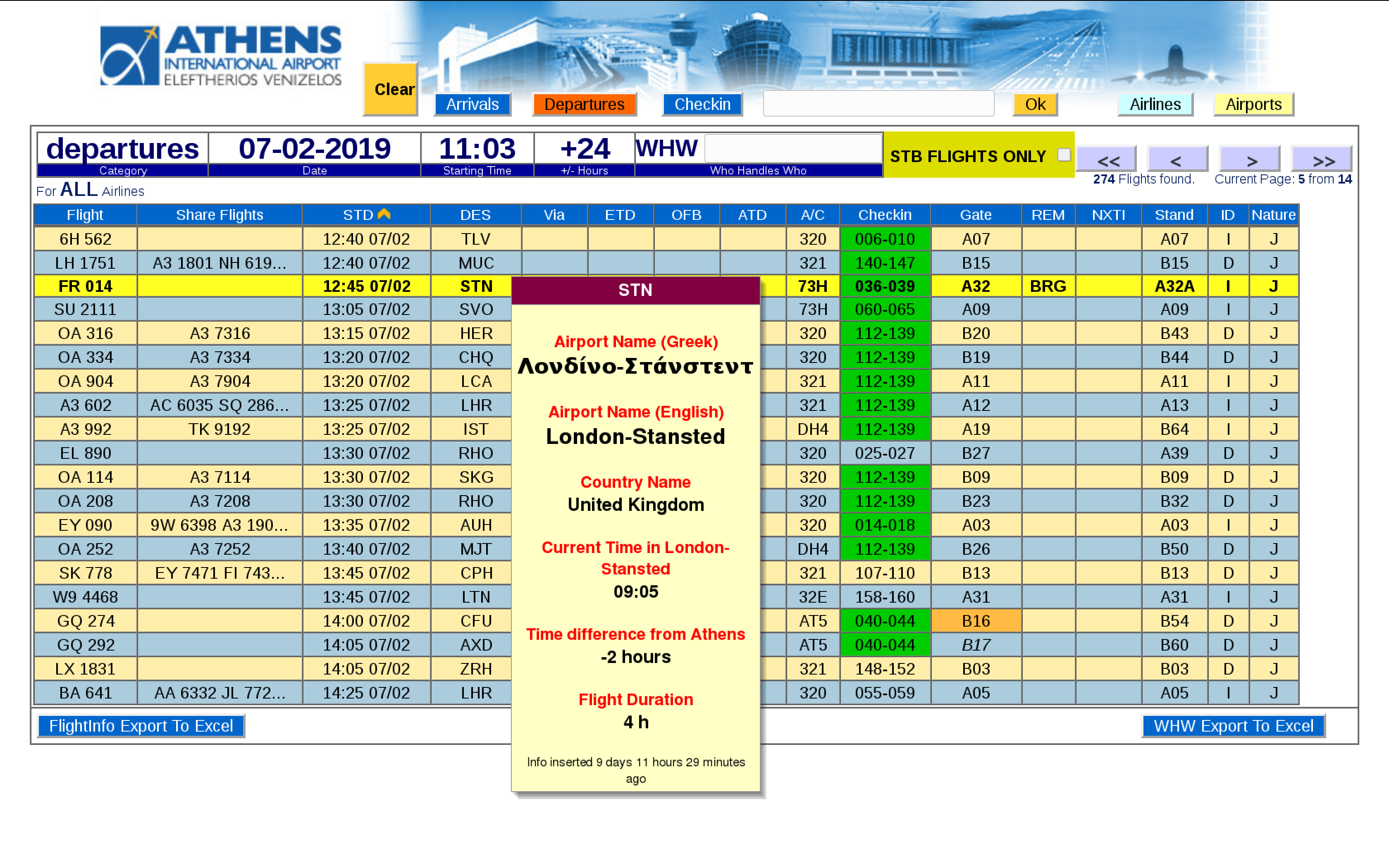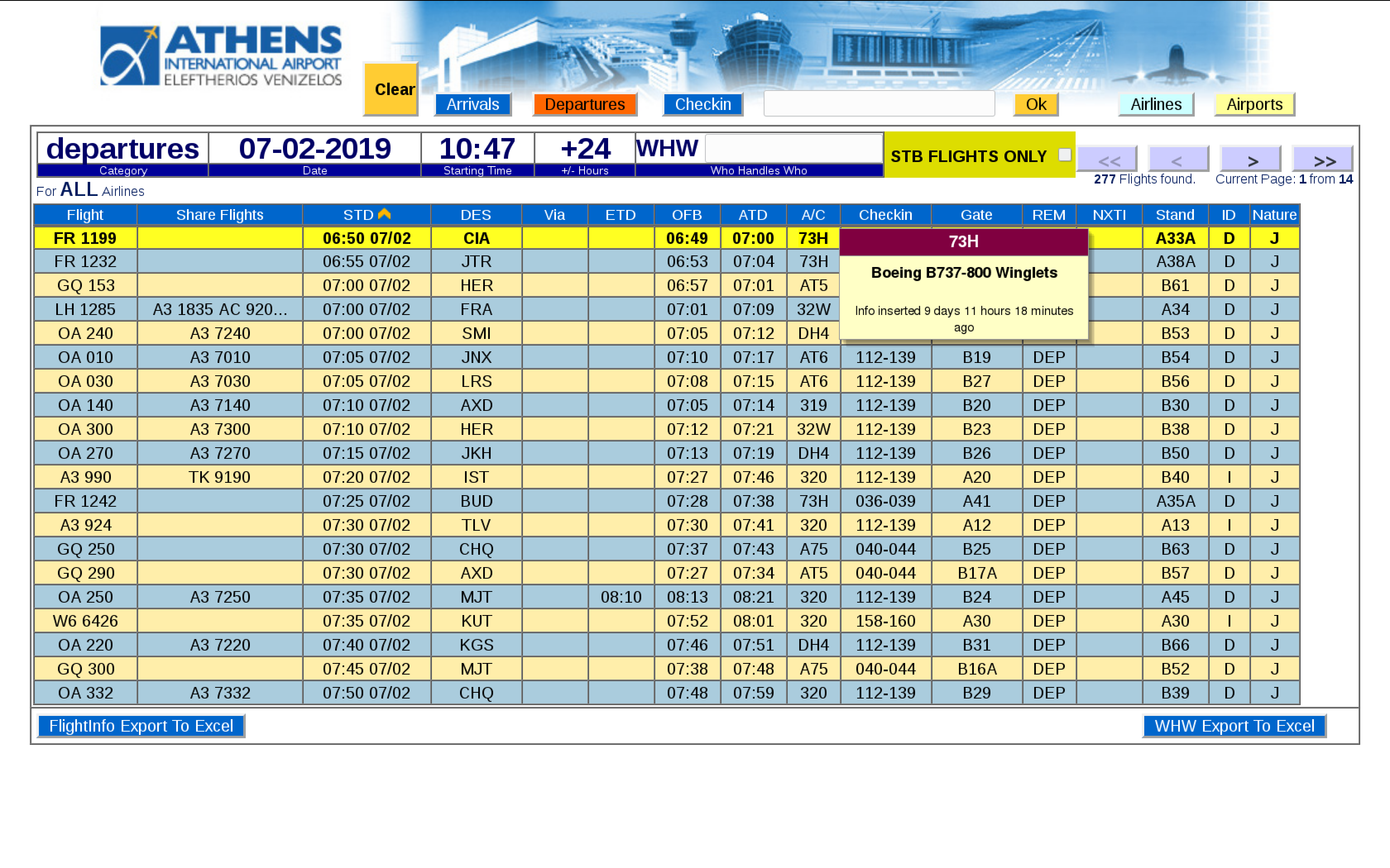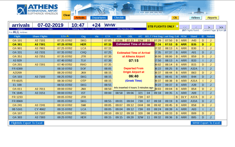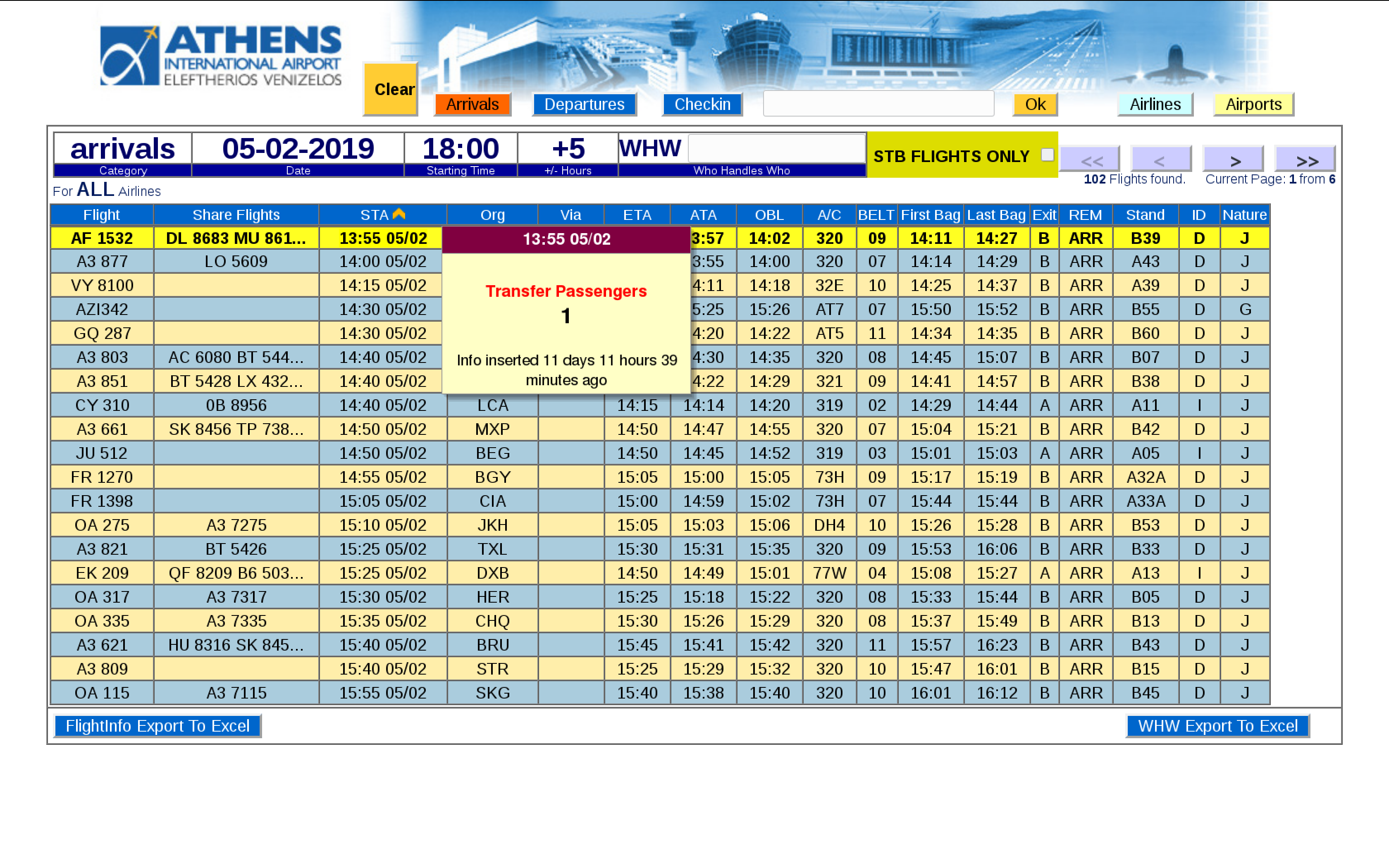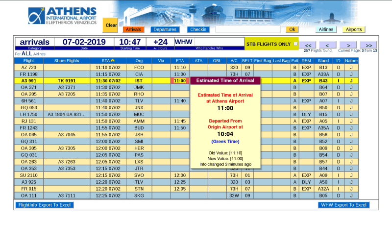 ● Special ScreenTips (yellow information box that pops up when hovering the mouse around a data element) , displaying extra information that is interconnected with UFIS/FIDS and is able to display flight status , airport name , airline name , etc.