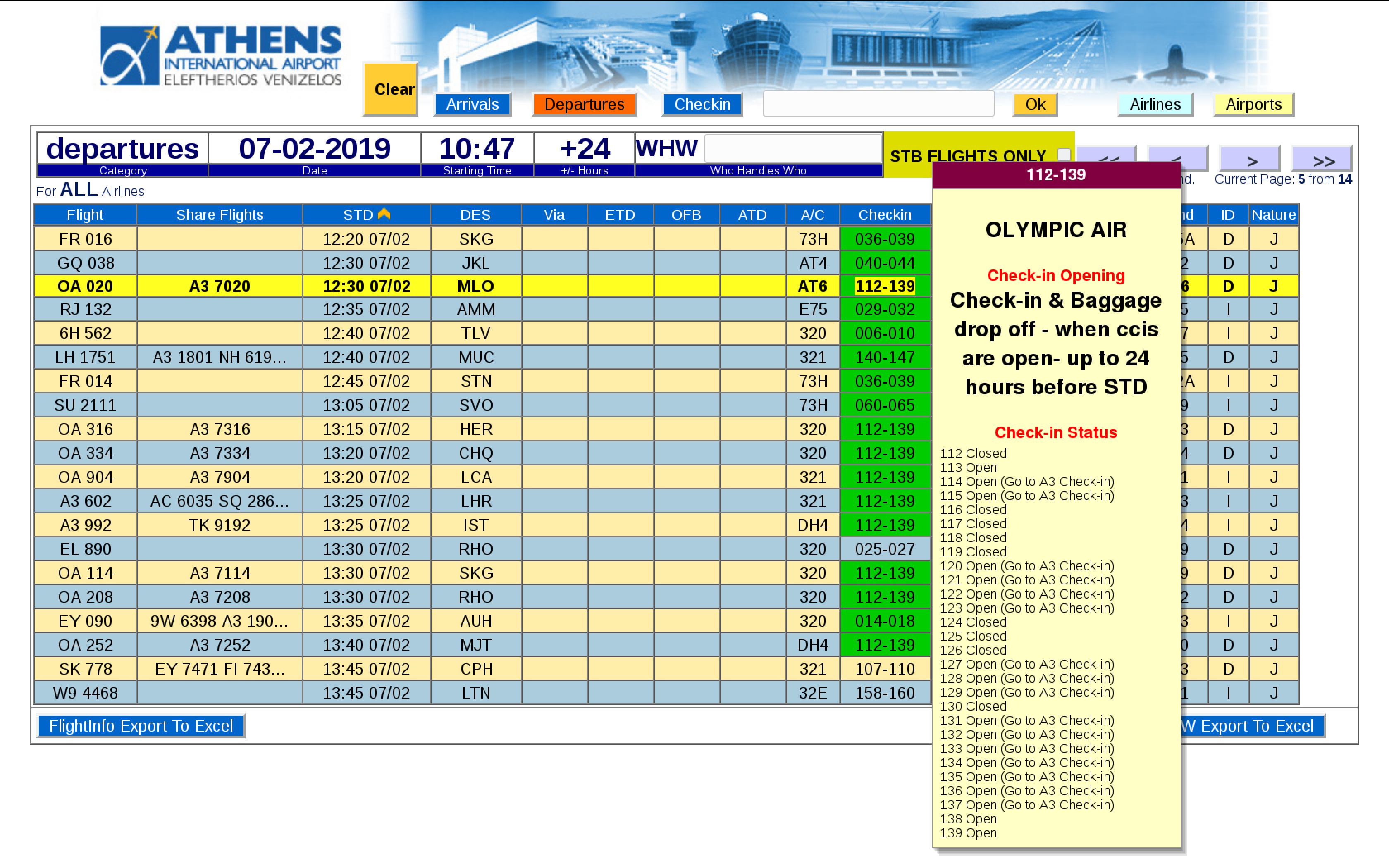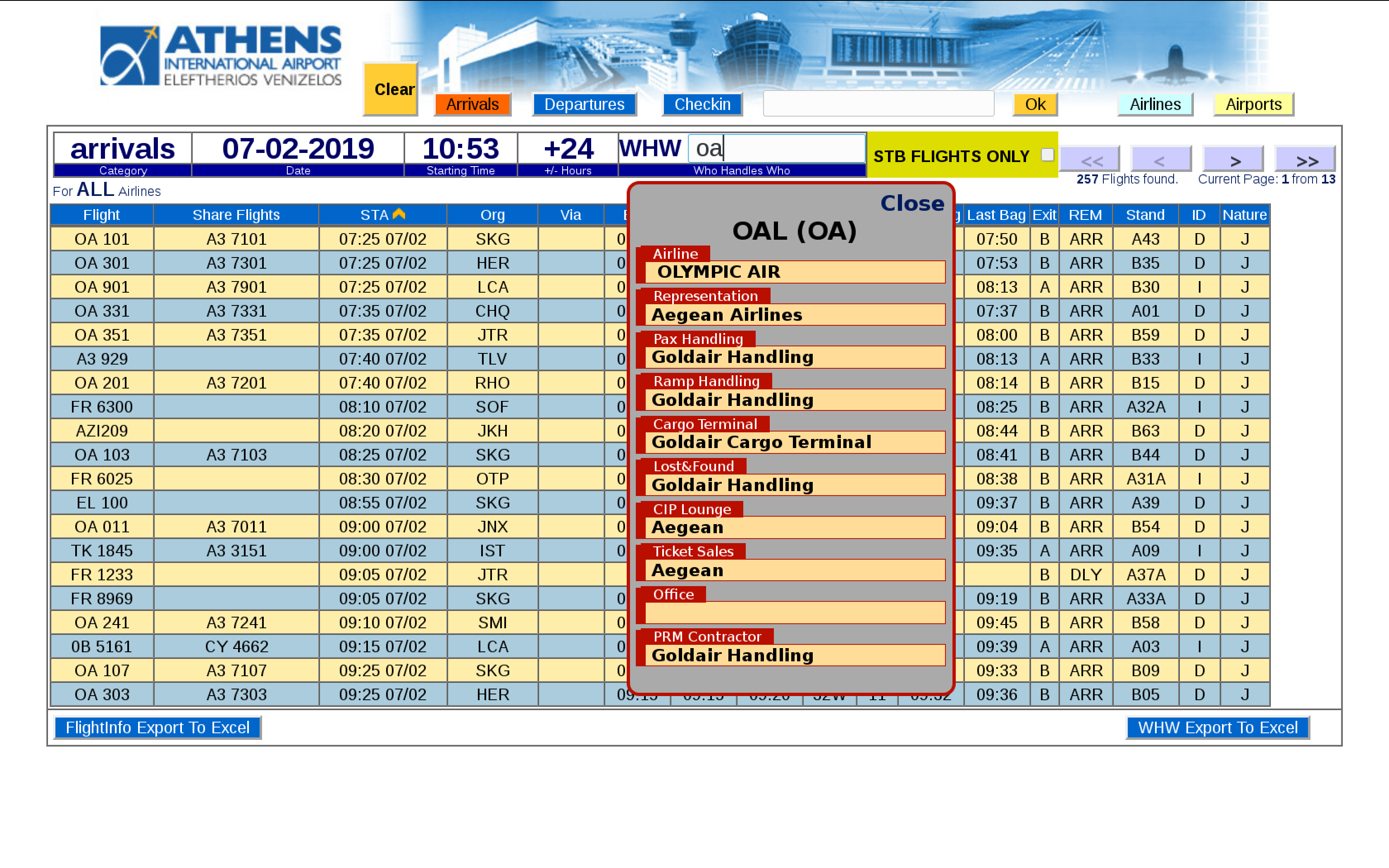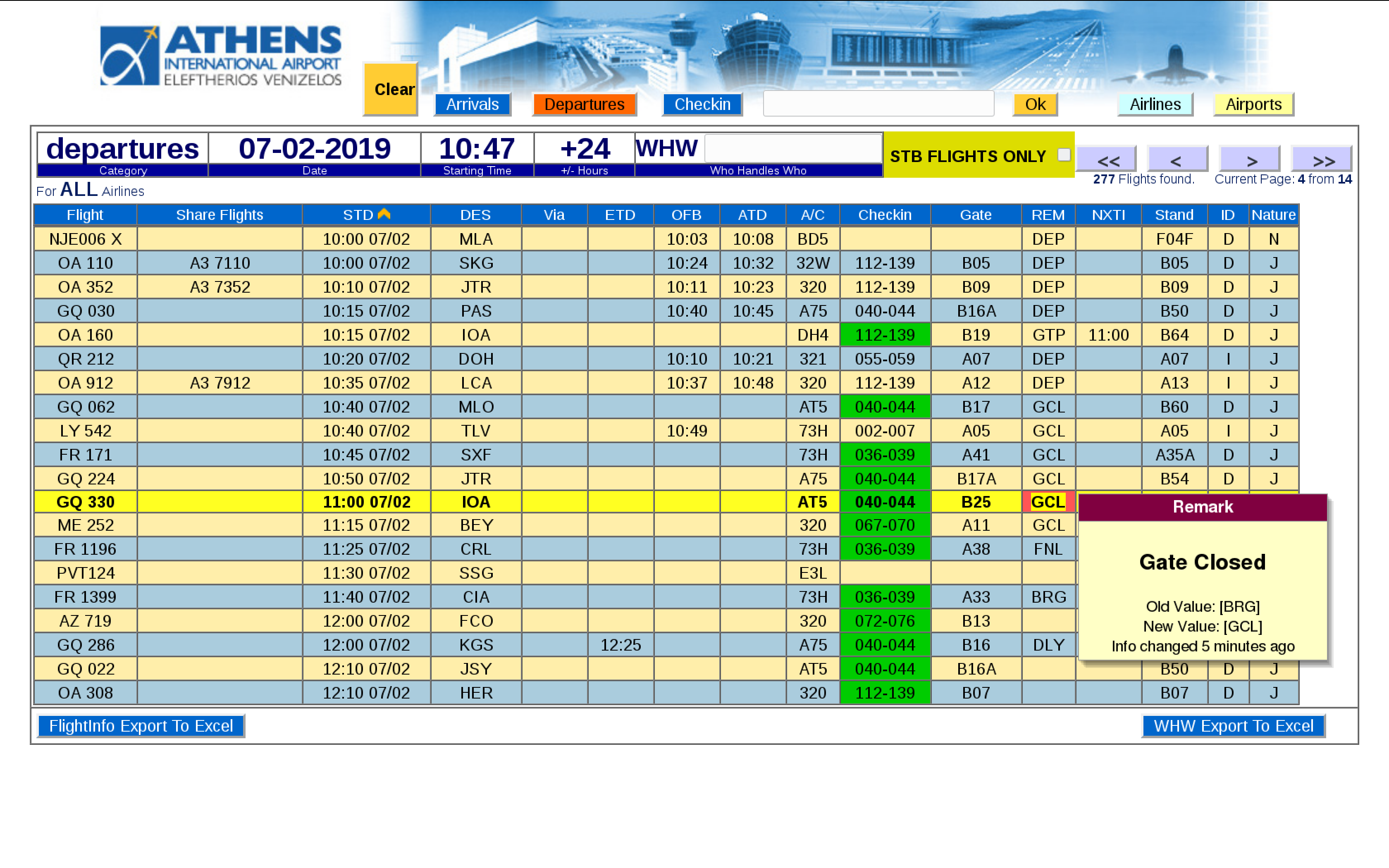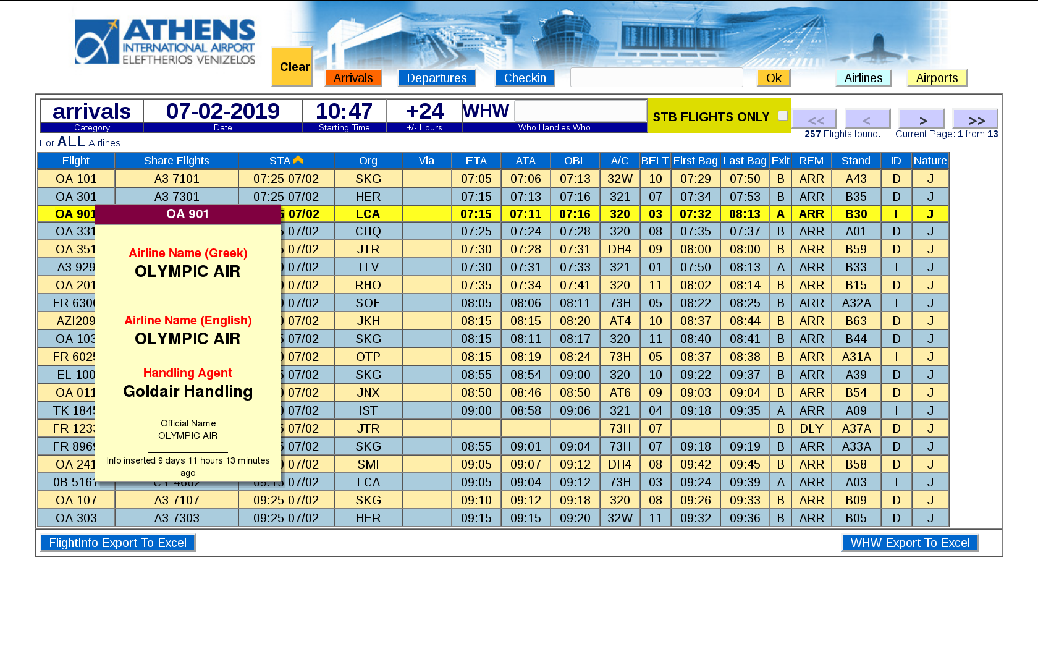 ● Special ScreenTips (yellow information box that pops up when hovering the mouse around a data element) , displaying extra information that is interconnected with UFIS/FIDS and is able to display flight status , airport name , airline name , etc.